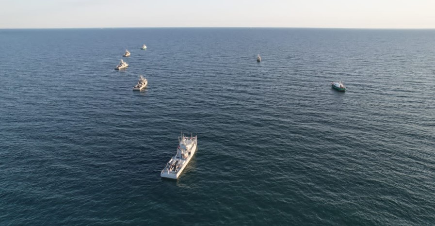Ақтауда қала күніне орай Каспий теңізінде кемелер шеруі өтті, деп хабарлайды ҚазАқпарат тілшісі.